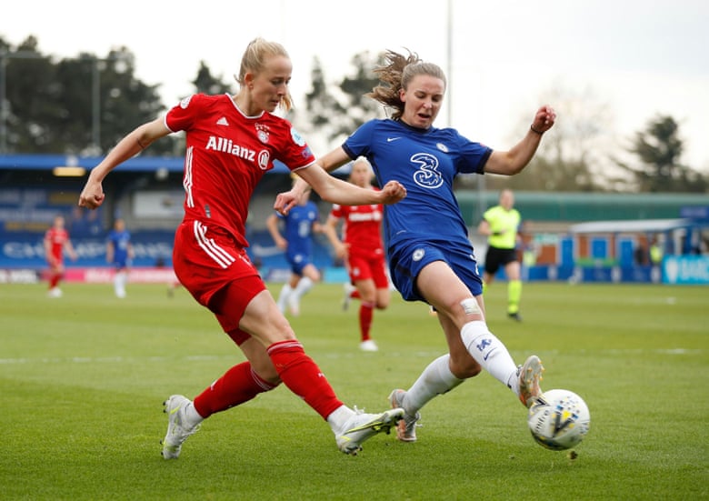 O primeiro confronto aconteceu em Munique e trouxe algumas surpresas pelo lado do Bayern. Consciente das dificuldades que seu time poderia sofrer contra o ataque rápido e poderoso das blues, Jens Scheuer optou por entrar em campo com uma escalação mais defensiva do que de costume. Duas de suas principais armas ofensivas na temporada, Lea Schüller e Linda Dallmann começaram a partida no banco e a experiente Laudehr entrou como titular. O plano de jogo das alemãs foi claro, aumentar a marcação no meio campo, não subir muito as linhas para evitar deixar sua defesa exposta e conseguir neutralizar uma das principais formas de jogo do Chelsea, que gosta de usar suas atacantes para explorar, em velocidade, as costas da linha defensiva dos adversários.